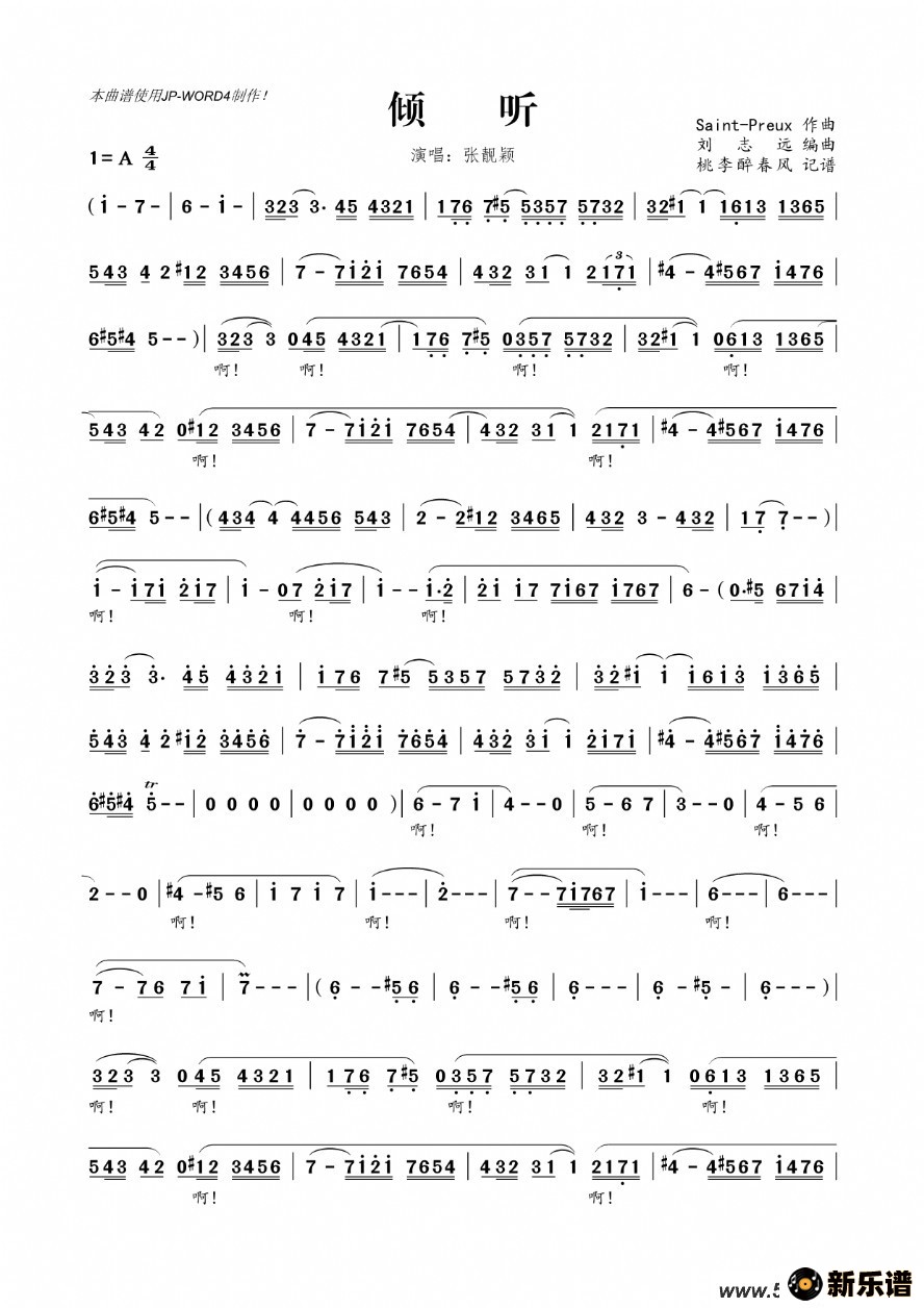《倾听》最新曲谱 张靓颖-桃李醉春风制谱