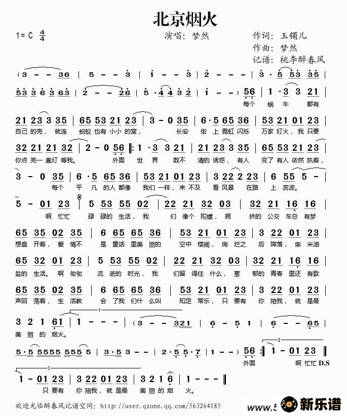 《北京烟火》最新曲谱 梦然-桃李醉春风制谱