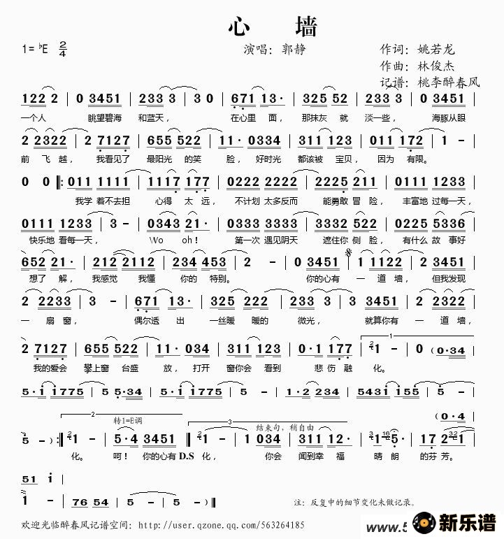 《心墙》最新曲谱 郭静-桃李醉春风制谱