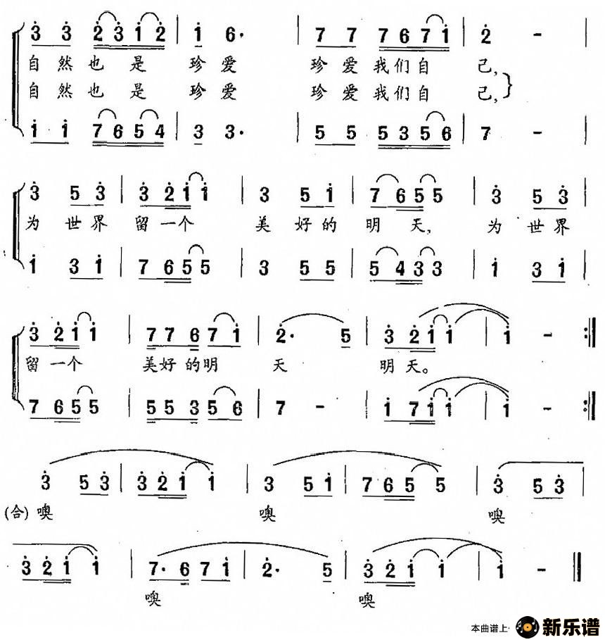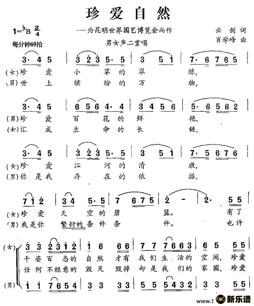 演唱的珍爱自然歌词,珍爱自然最新曲谱.