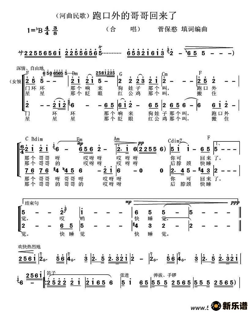 > 跑口外的哥哥回来了最新曲谱