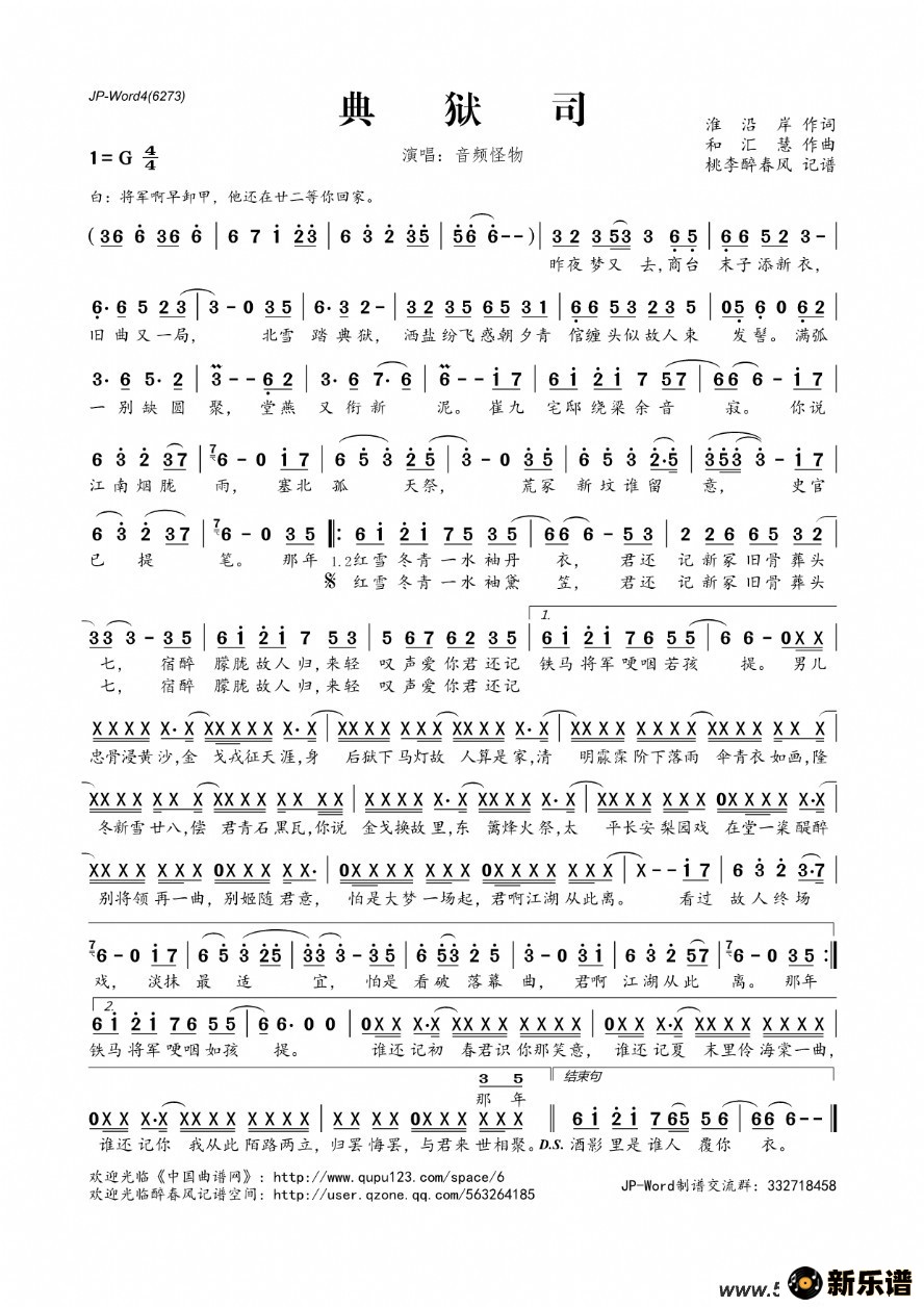音频怪物演唱的典狱司(电视剧《老九门》片尾曲)歌词,典狱司(电视剧《老九门》片尾曲)最新曲谱.