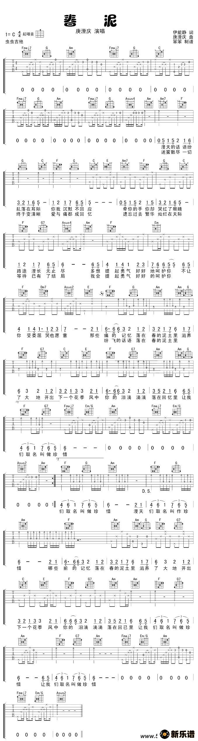 庾澄庆演唱的春泥歌词,春泥最新曲谱.