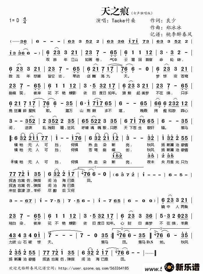 Tacke竹桑演唱的天之痕歌词,天之痕最新曲谱.