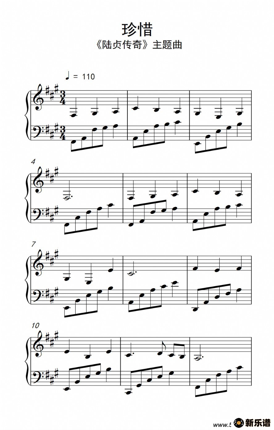 > 珍惜(《陆贞传奇》主题曲)最新曲谱