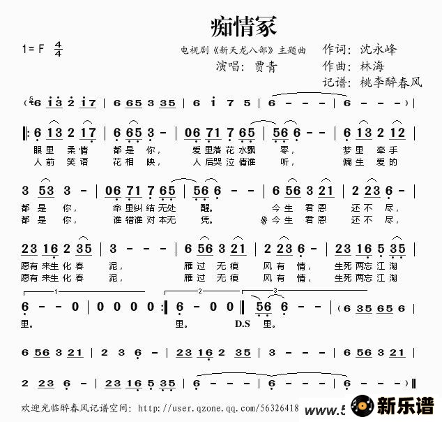 贾青演唱的痴情冢(《新天龙八部》主题曲)歌词,痴情冢(《新天龙八部》主题曲)最新曲谱.
