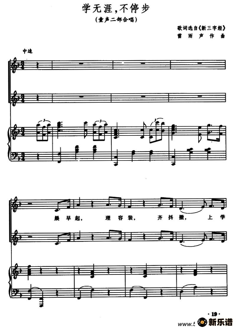 作词:歌词选自《新三字经》 作曲:雷雨声(童声二部合唱、正谱)