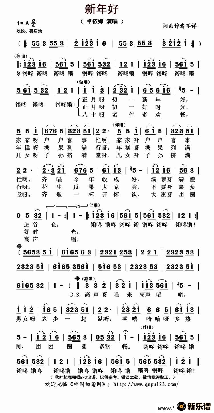 卓依婷演唱的新年好歌词,新年好最新曲谱.