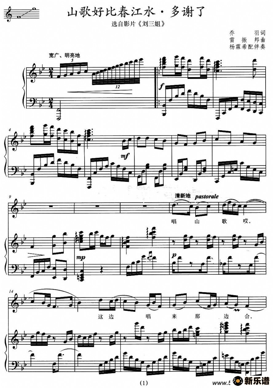 演唱的山歌好比春江水·多谢了歌词,山歌好比春江水·多谢了最新曲谱.