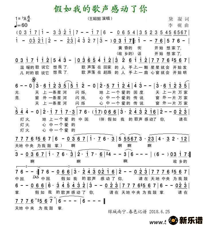 王昭懿演唱的假如我的歌声感动了你歌词,假如我的歌声感动了你最新曲谱.