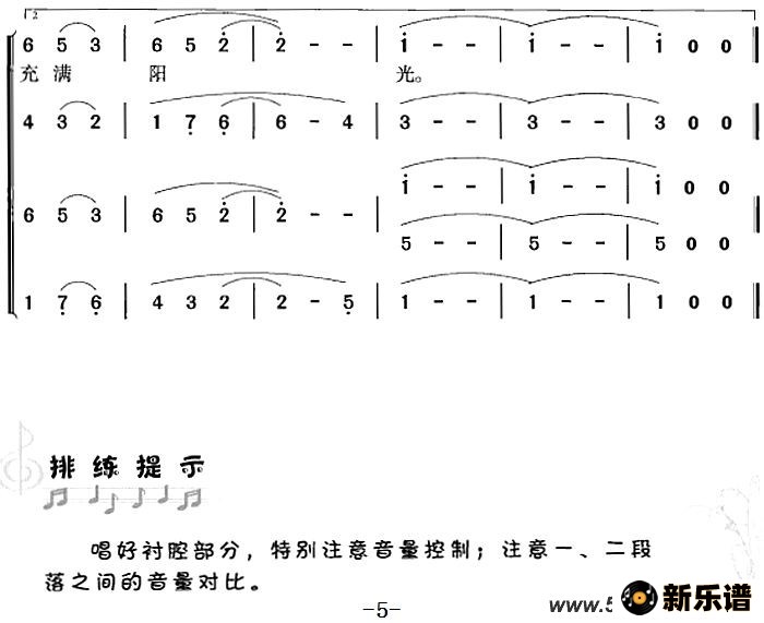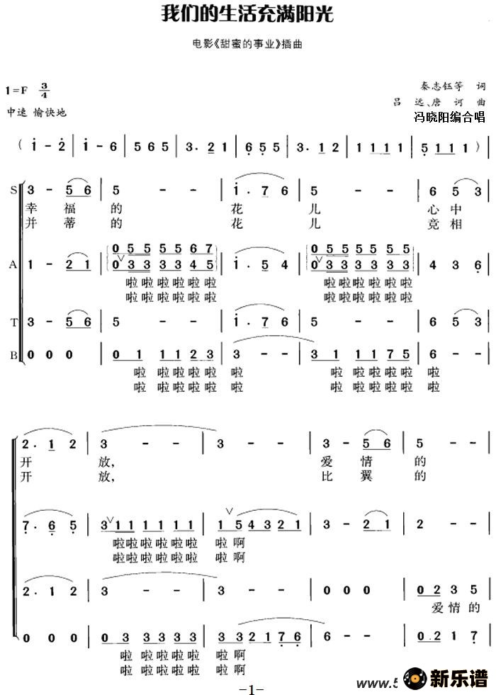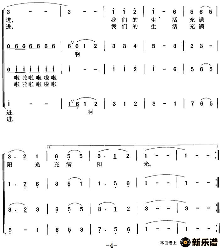 演唱的我们的生活充满阳光歌词,我们的生活充满阳光最新曲谱.