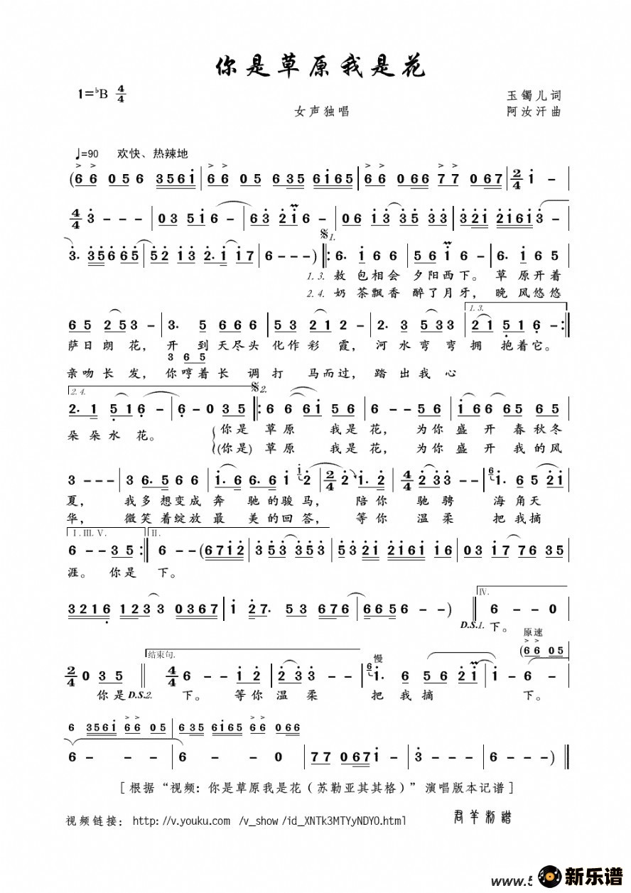 你是草原我是花 最新曲谱