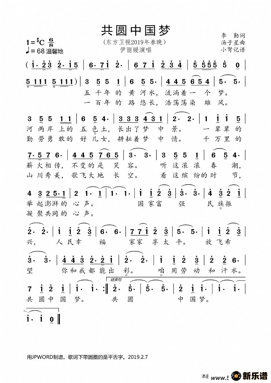 伊丽媛演唱的共圆中国梦歌词,共圆中国梦最新曲谱.