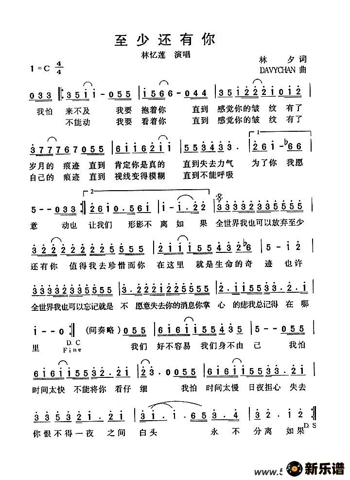 林忆莲演唱的至少还有你歌词,至少还有你最新曲谱.