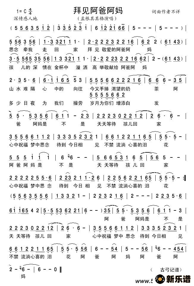 《拜见阿爸阿妈》最新曲谱 孟根其其格-古弓制谱