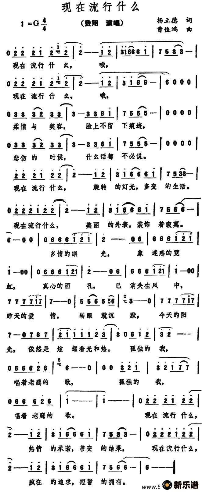 费翔演唱的现在流行什么歌词,现在流行什么最新曲谱.
