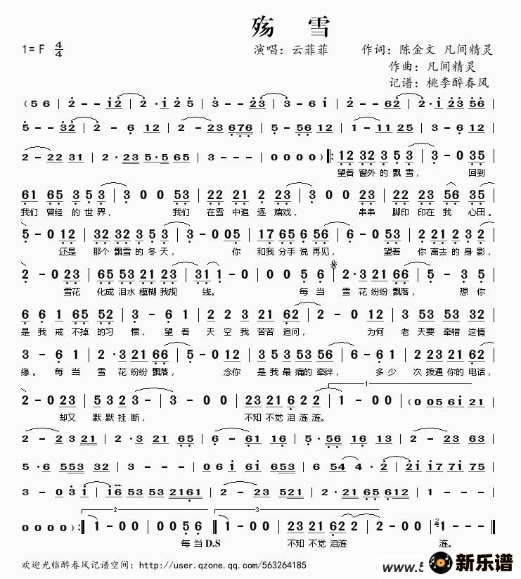 《殇雪》最新曲谱 云菲菲-桃李醉春风制谱