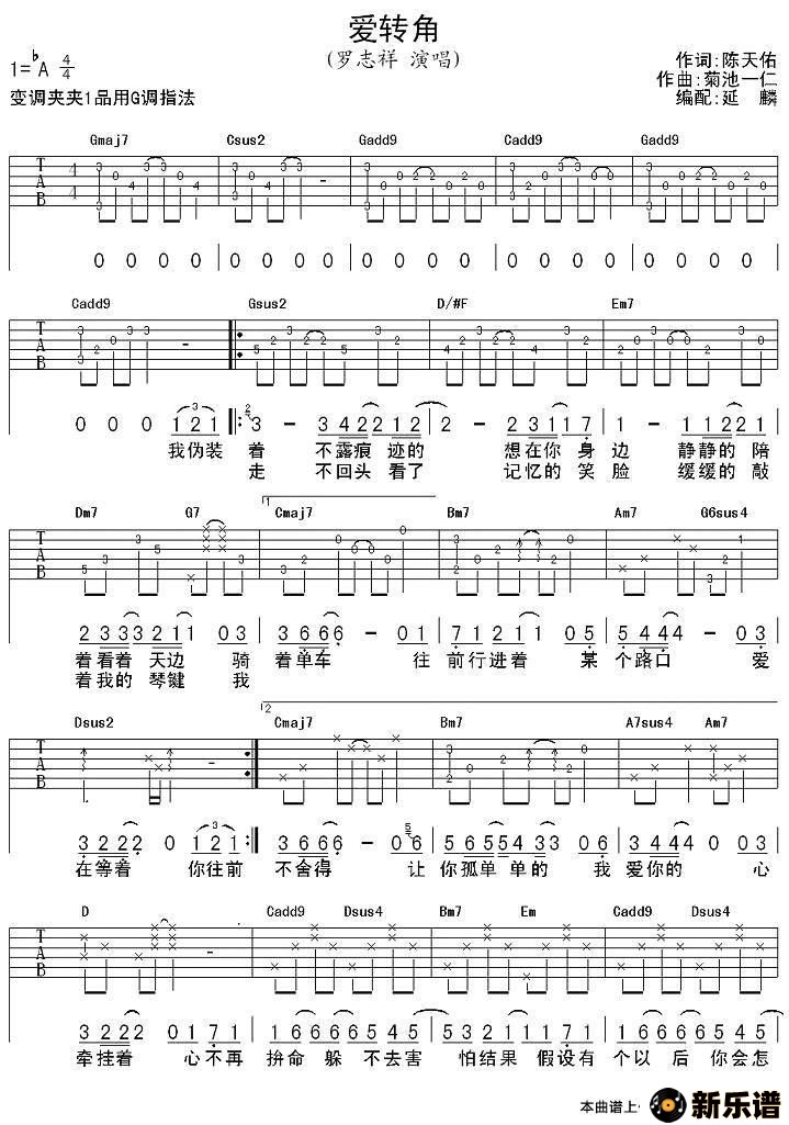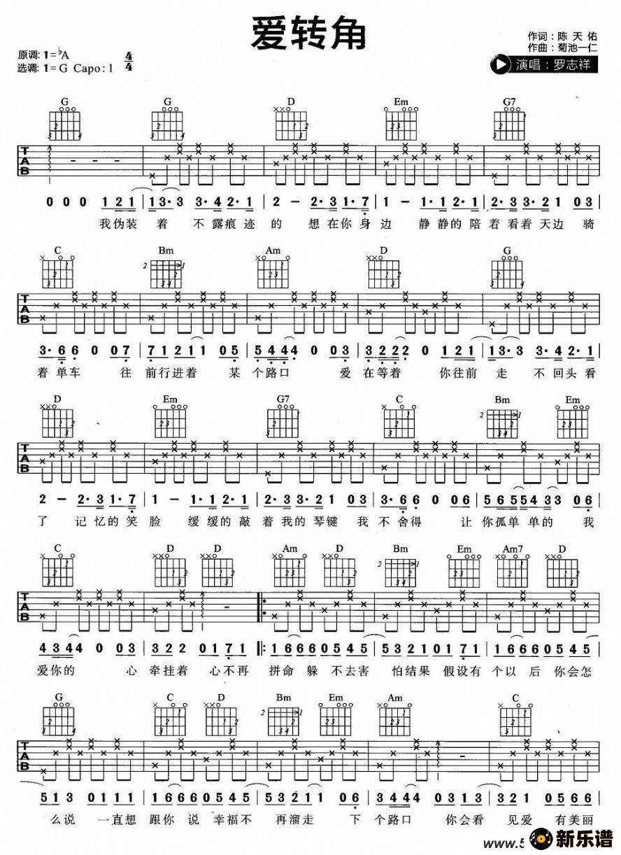 罗志祥演唱的爱转角歌词,爱转角最新曲谱.