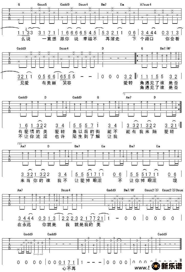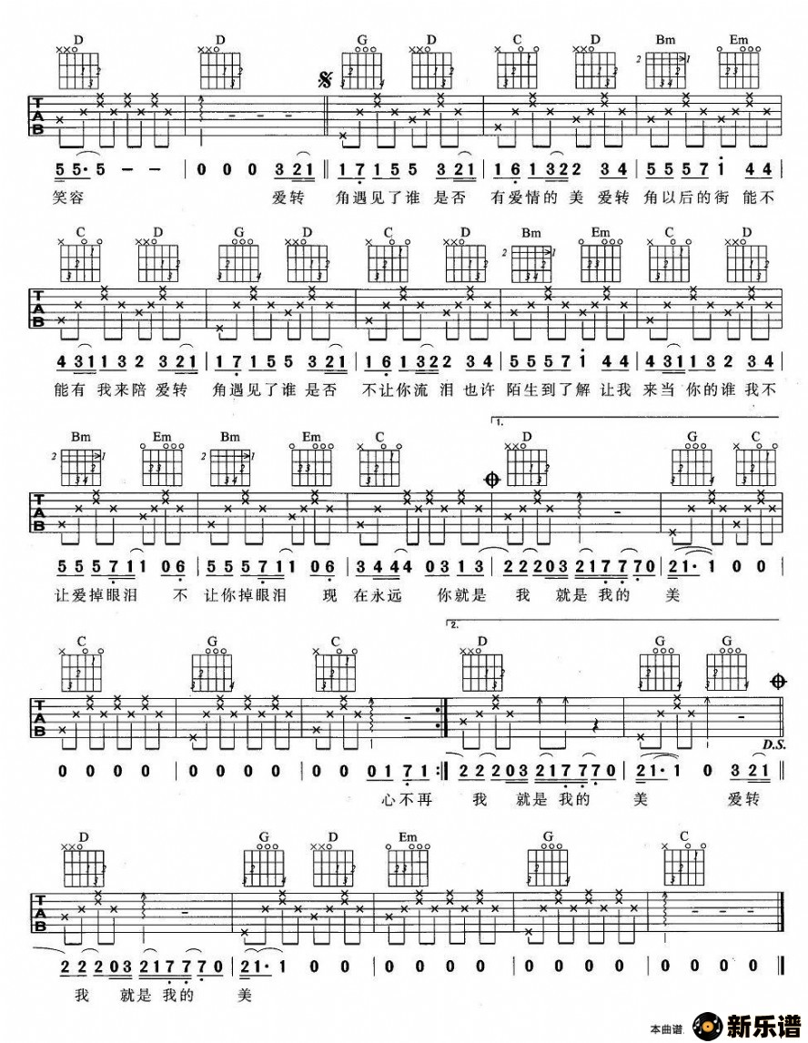 爱转角(电视剧《转角遇到爱》主题曲、wandy编配版)吉他谱