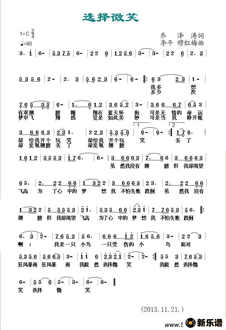 穆红梅演唱的选择微笑歌词,选择微笑最新曲谱.
