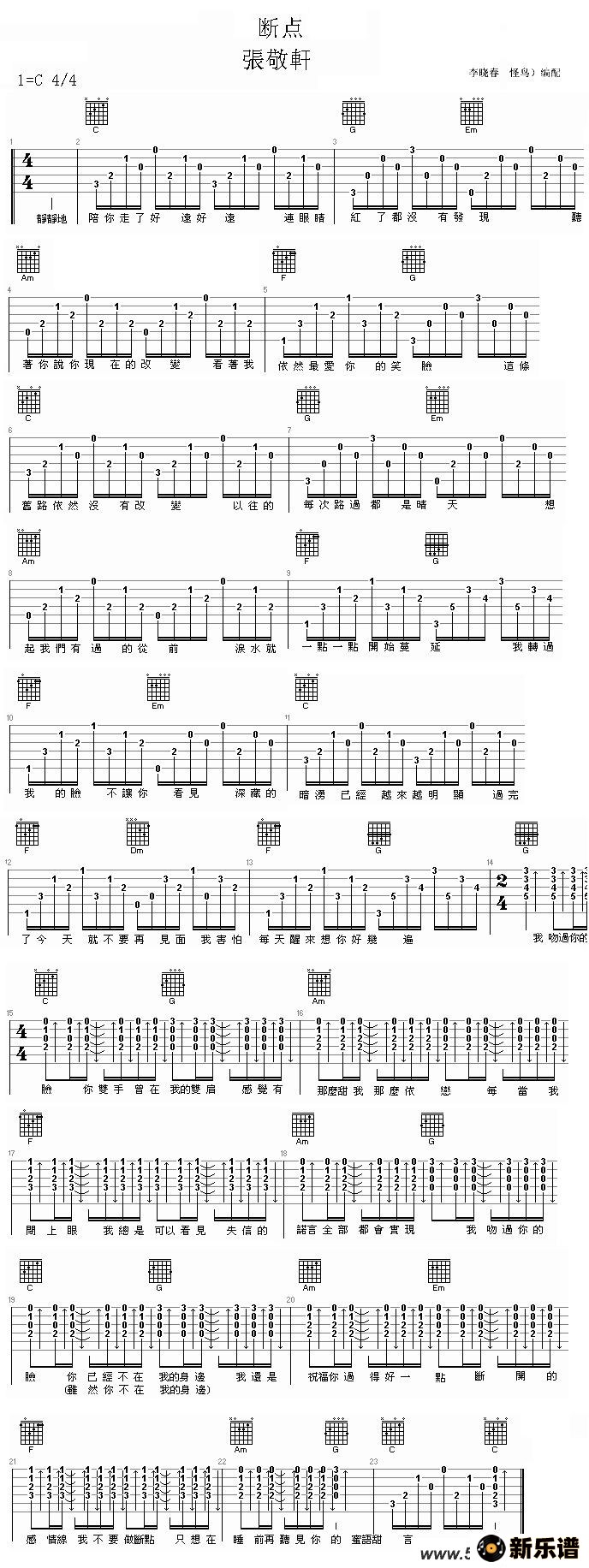 张敬轩演唱的断点歌词,断点最新曲谱.