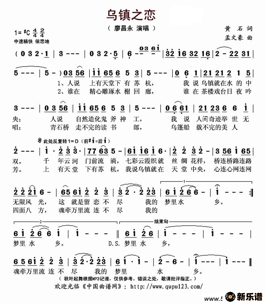廖昌永演唱的乌镇之恋歌词,乌镇之恋最新曲谱.