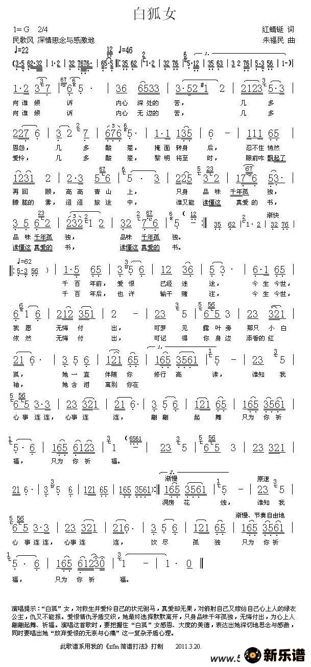 李敏演唱的白狐女歌词,白狐女最新曲谱.
