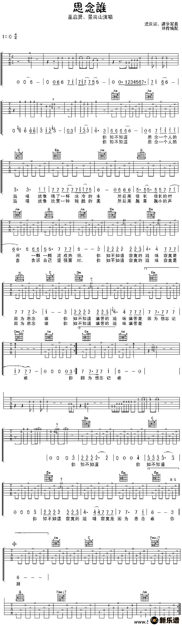 巫启贤演唱的思念谁歌词,思念谁最新曲谱.