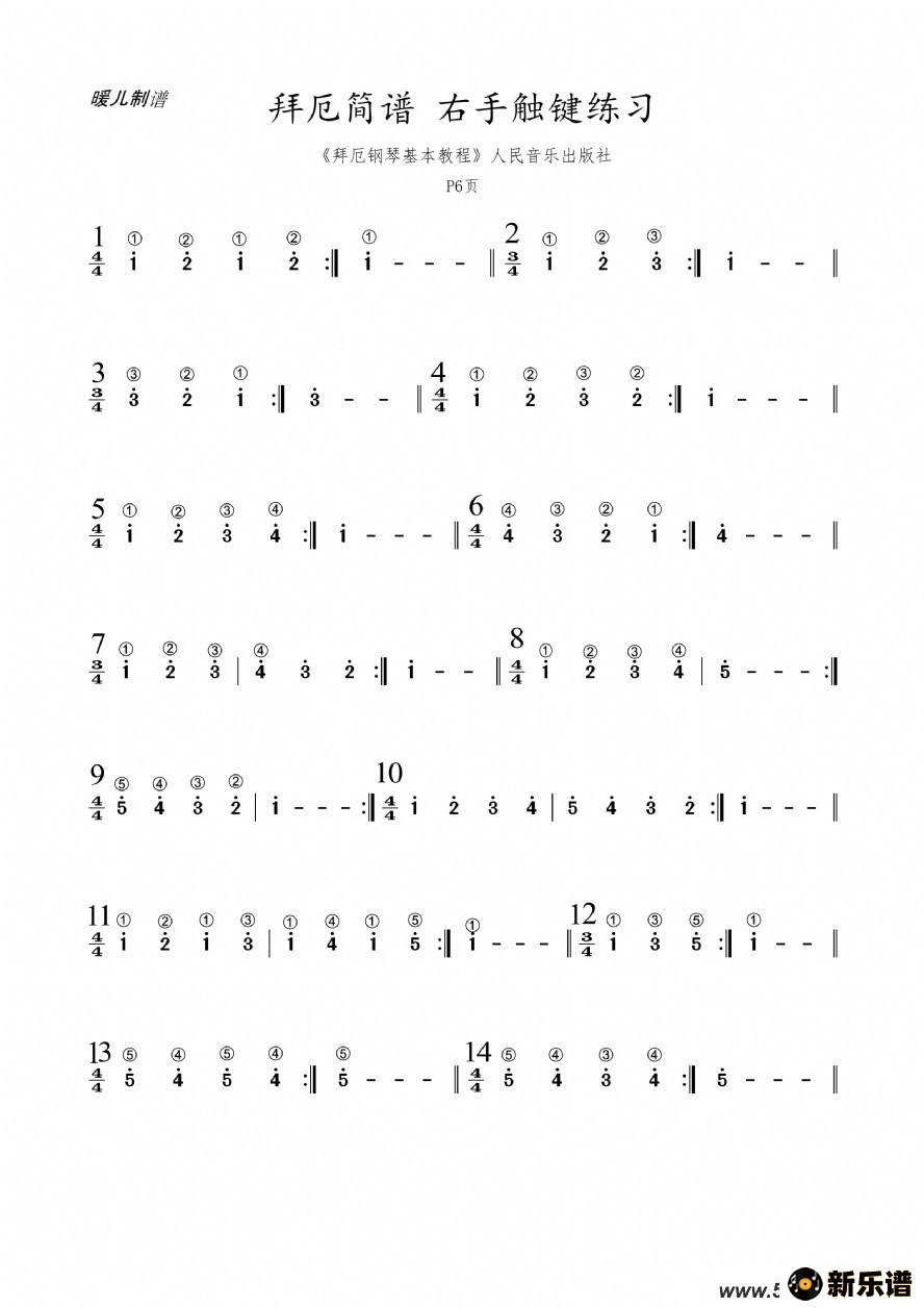 演唱的拜厄简谱 右手触键练习歌词,拜厄简谱 右手触键练习最新曲谱.