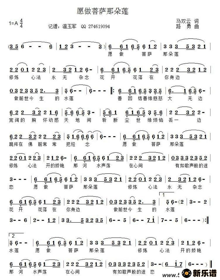 《愿做菩萨那朵莲》最新曲谱 路勇