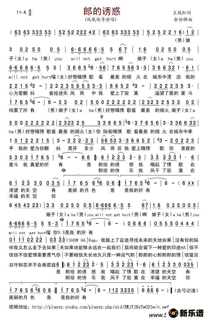 《郎的诱惑》最新曲谱 凤凰传奇-古弓制谱