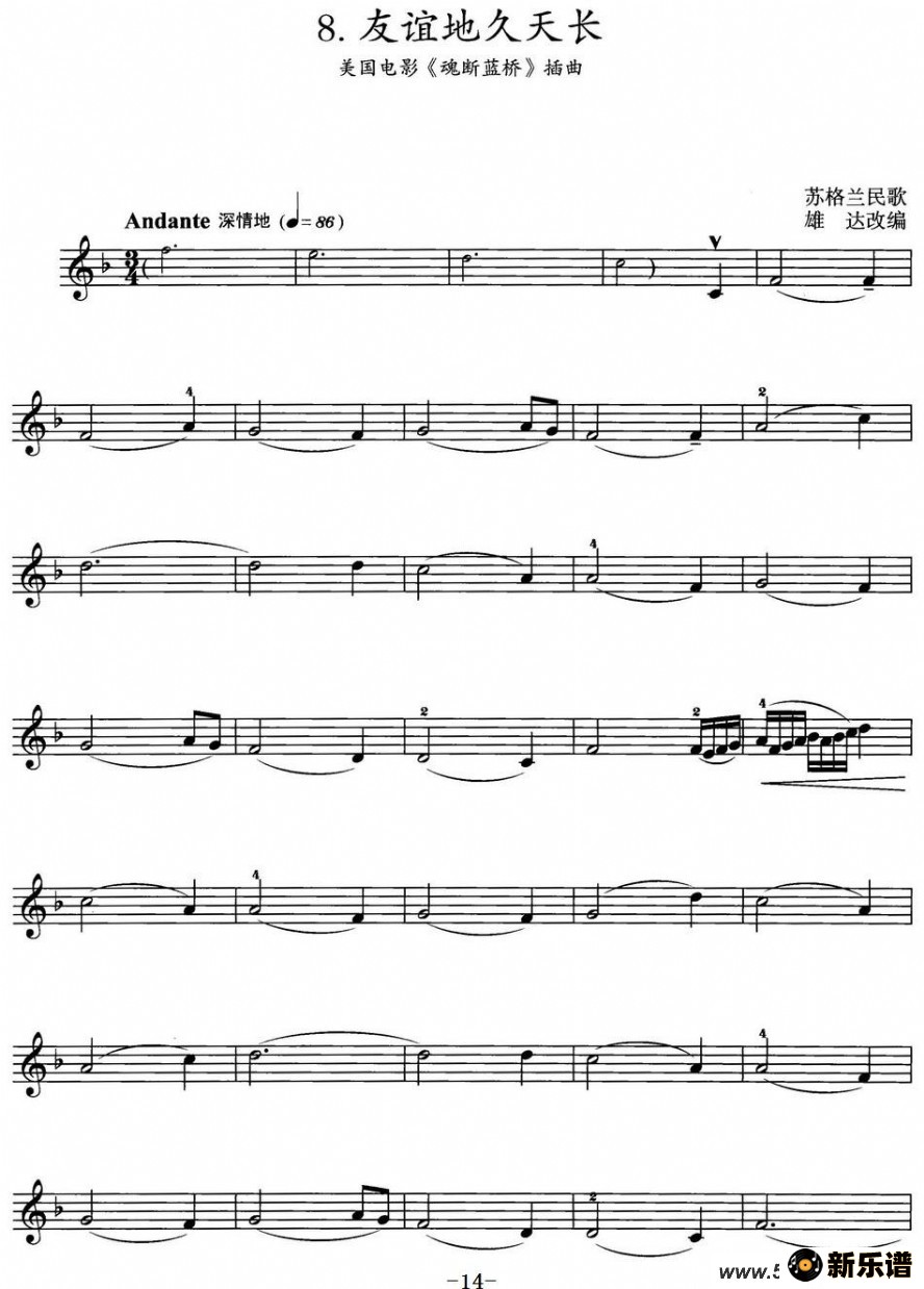 > 友谊地久天长(美国电影《魂断蓝桥》插曲)最新曲谱