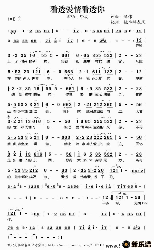 《看透爱情看透你》最新曲谱 冷漠-桃李醉春风制谱