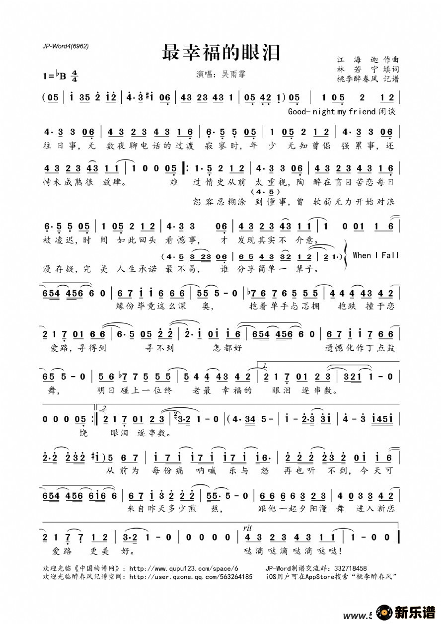 《最幸福的眼泪》最新曲谱 吴雨霏-桃李醉春风制谱