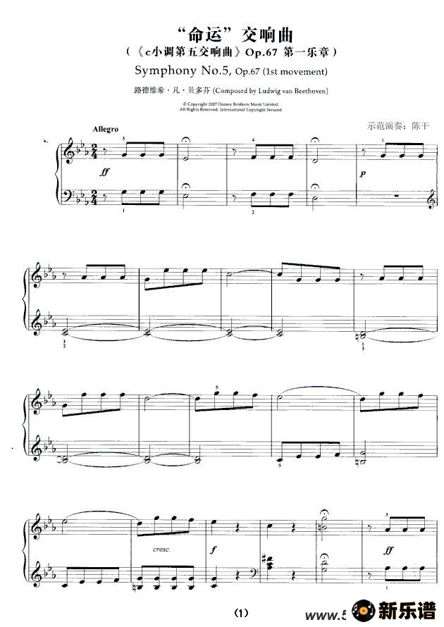 命运交响曲/ c小调第五交响曲 相关曲谱