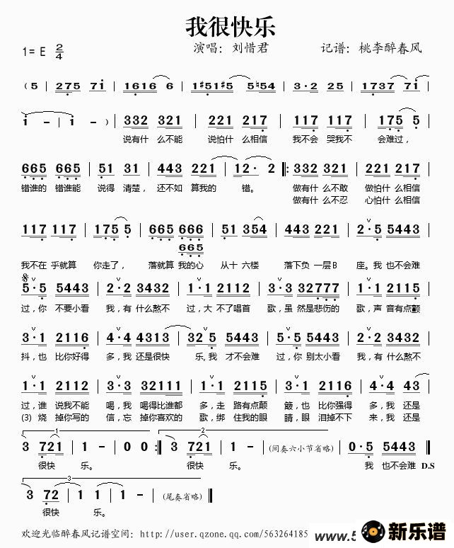 《我很快乐》最新曲谱 刘惜君-桃李醉春风制谱