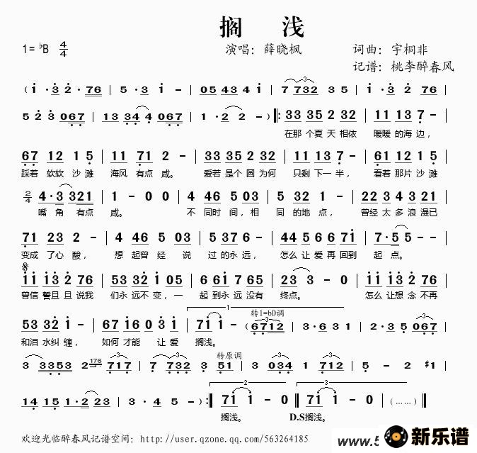 《搁浅》最新曲谱 薛晓枫-桃李醉春风制谱