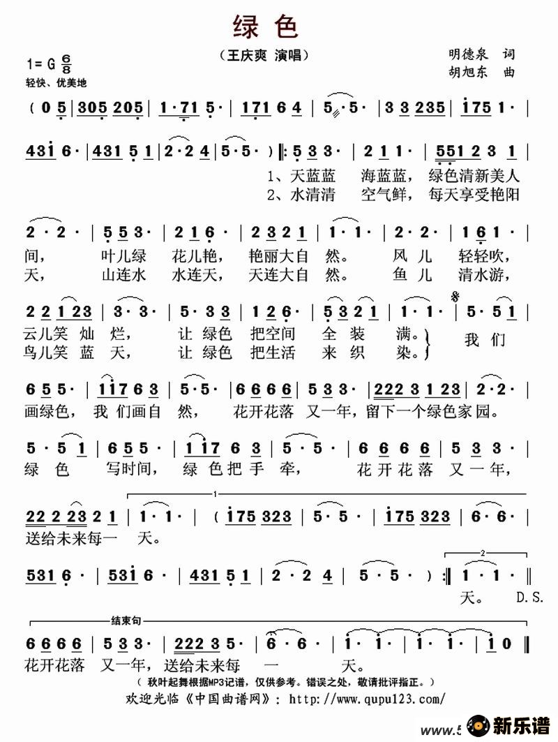 > 绿色最新曲谱