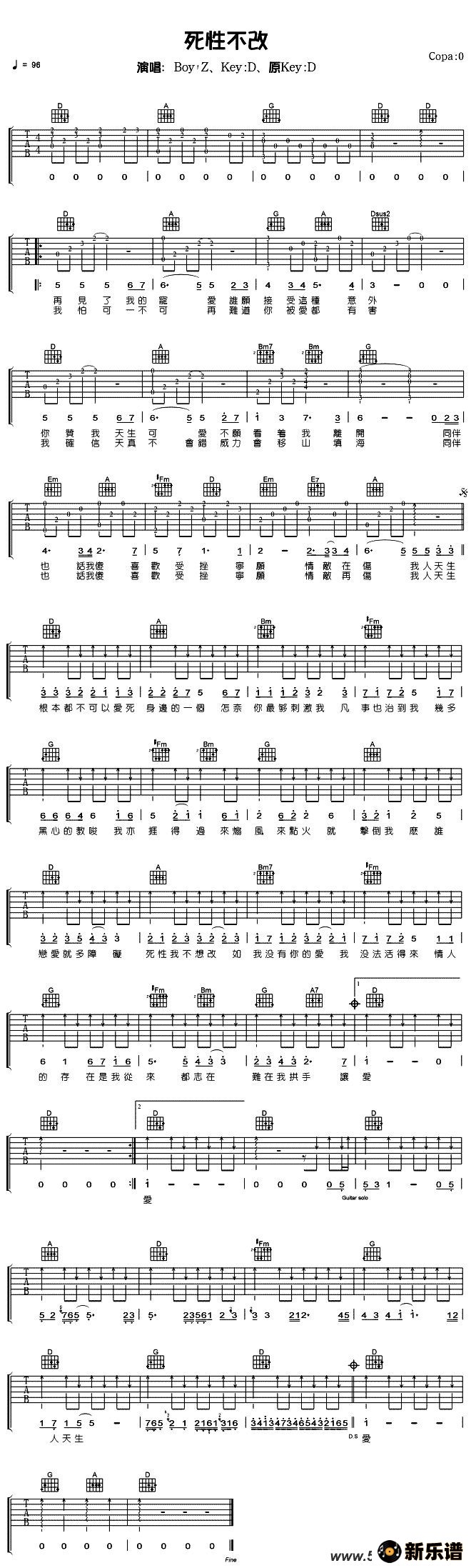 《死性不改》最新曲谱 Boy、Z Twins