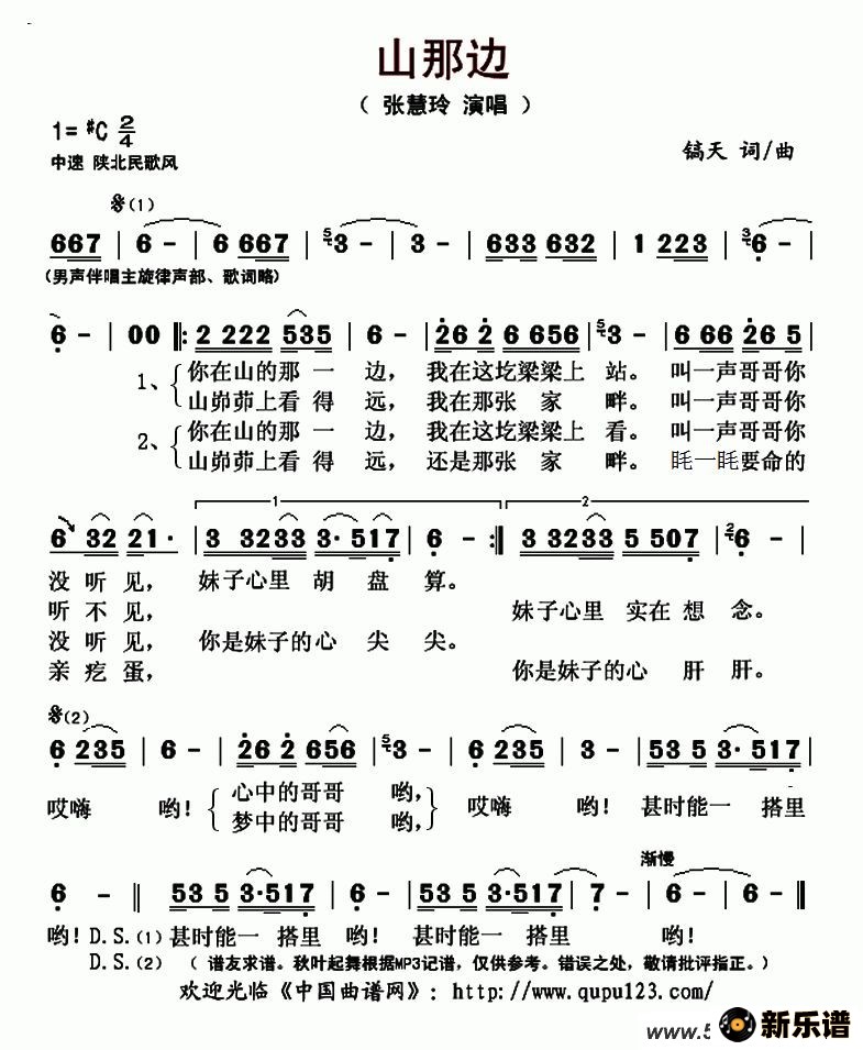 张慧玲演唱的山那边歌词,山那边最新曲谱.