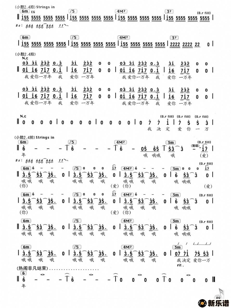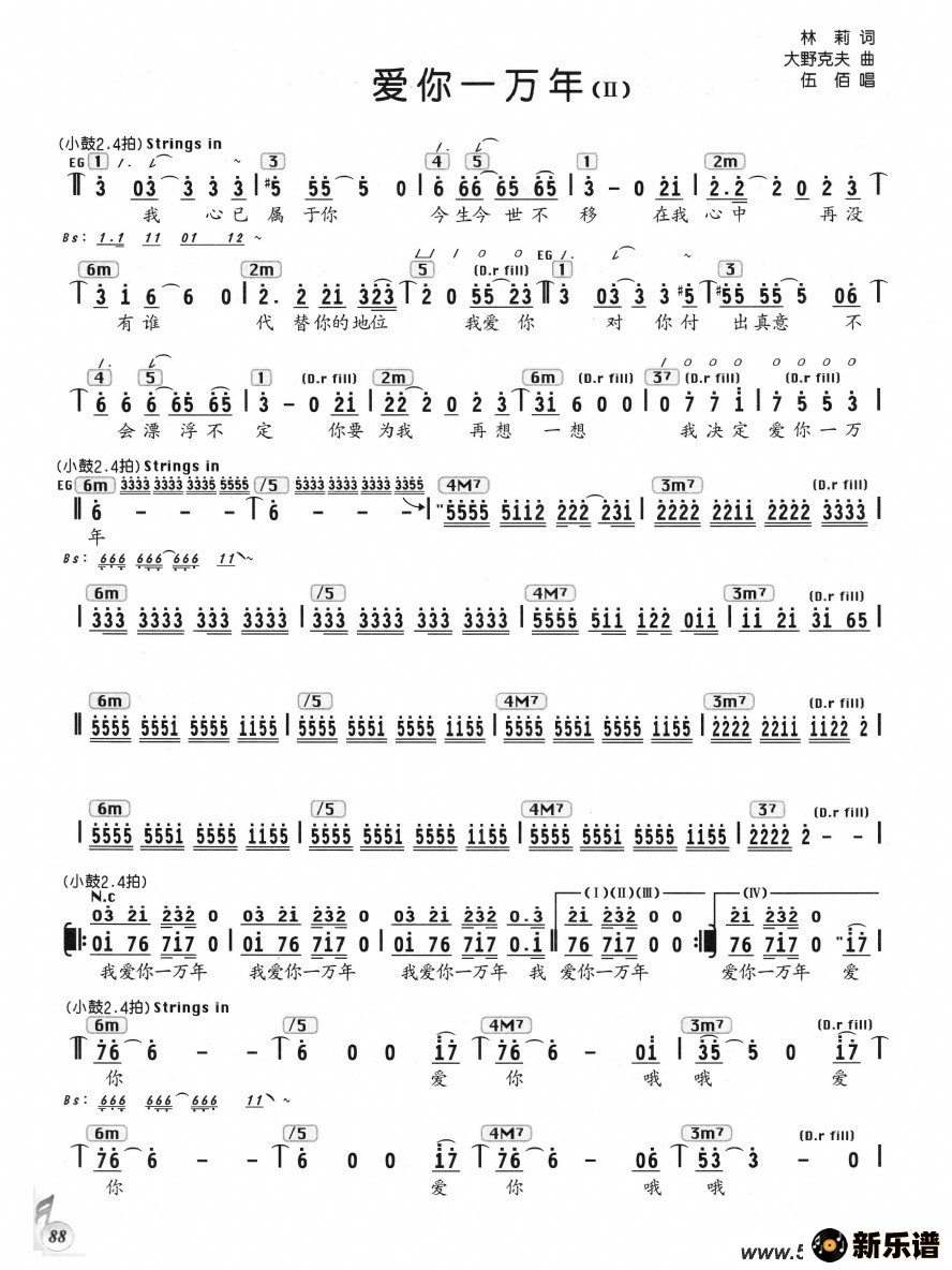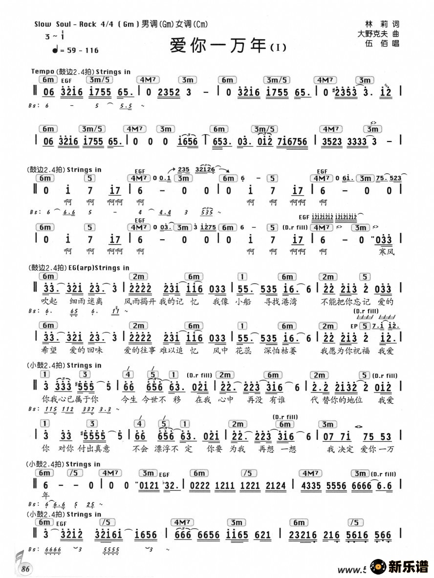 伍佰演唱的爱你一万年歌词,爱你一万年最新曲谱.