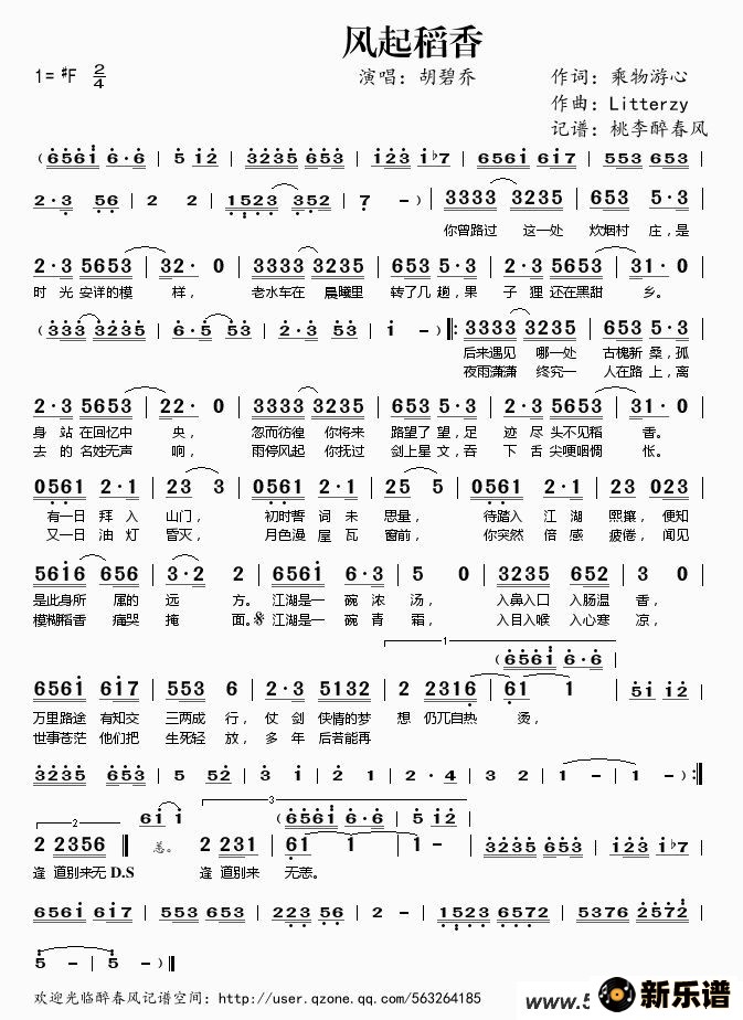 《风起稻香》最新曲谱 胡碧乔-桃李醉春风制谱
