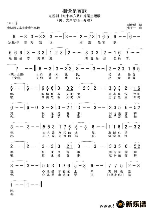 相逢是首歌(电视剧《红十字方队》主题曲)俞静 俞静演唱的相逢是首歌(电视剧《红十字方队》主题曲)歌词,相逢是首歌(电视剧《红十字方队》主题曲)最新曲谱. 谱友bfdn00044 抄谱上传:转自《百度图片》:来源《中国曲谱网》