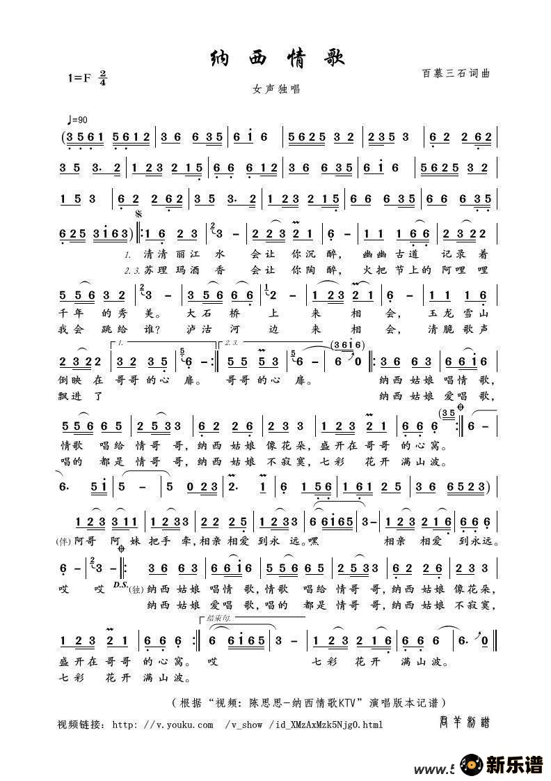 陈思思演唱的纳西情歌歌词,纳西情歌最新曲谱.