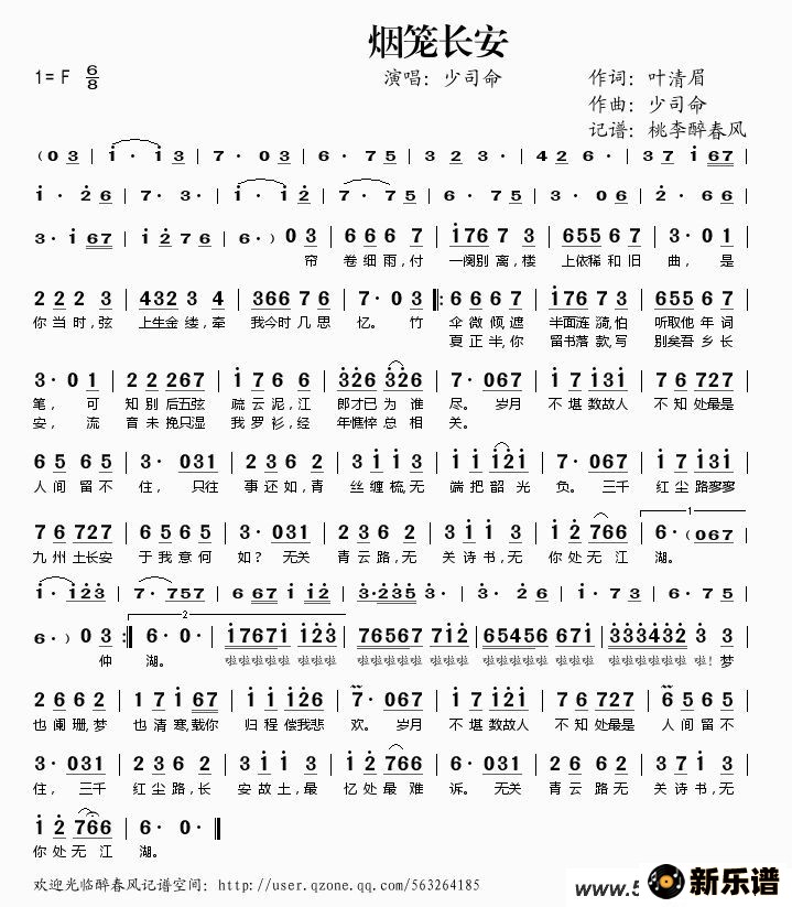 《烟笼长安》最新曲谱 少司命-桃李醉春风制谱