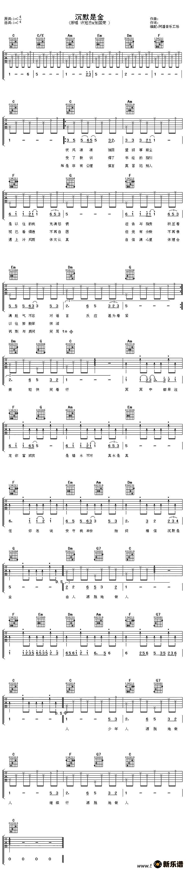 > 沉默是金最新曲谱