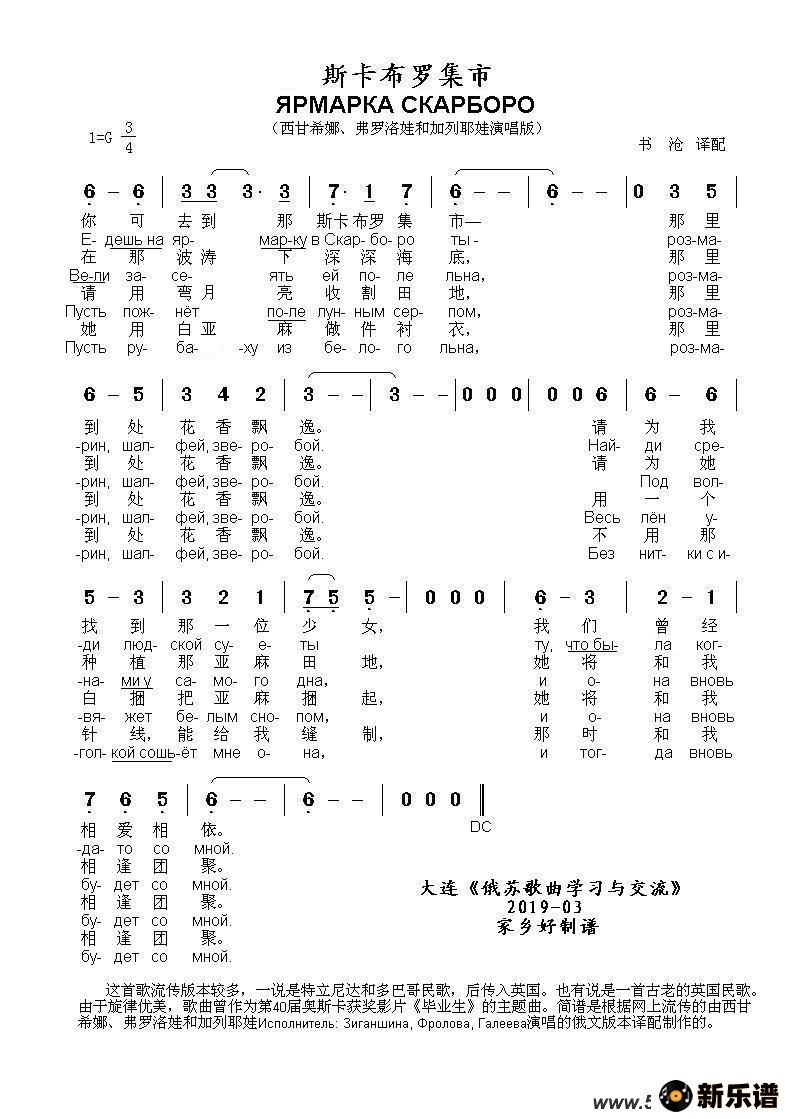 斯卡布罗集市ярмарка скарборо西甘希娜、弗罗洛娃和加列耶娃演唱版 西甘希娜、弗罗洛娃和加列耶娃演唱版演唱的斯卡布罗集市ярмарка скарборо歌词,斯卡布罗集市ярмарка скарборо最新曲谱. 此最新曲谱由新乐谱会员 君羊 上传