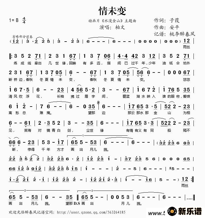 《情未变(动画片《水漫金山》主题曲)》最新曲谱 柏文-桃李醉春风制谱
