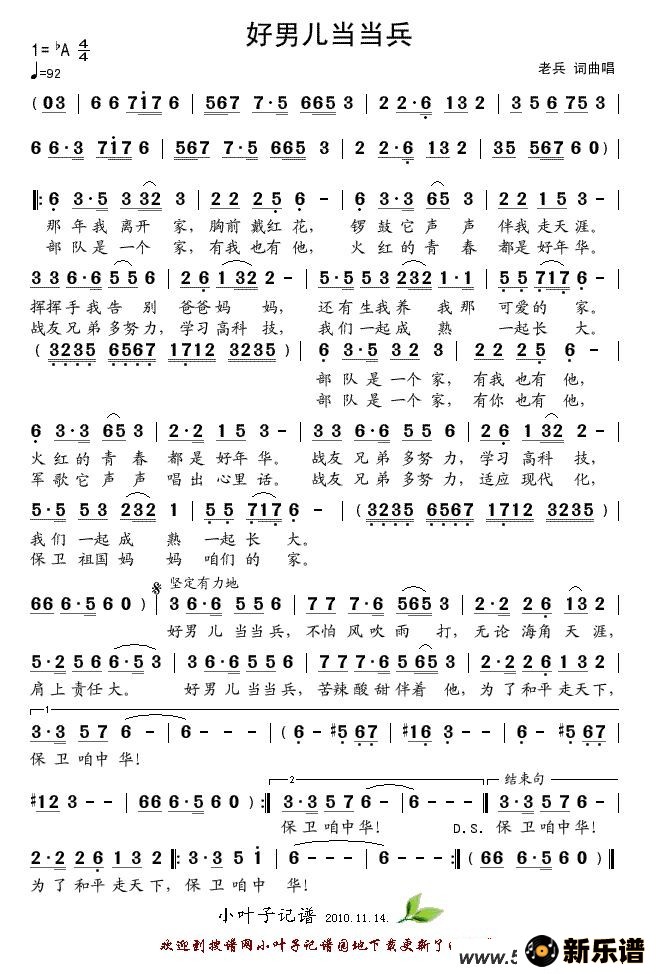 《好男儿当当兵》最新曲谱 老兵-小叶子制谱