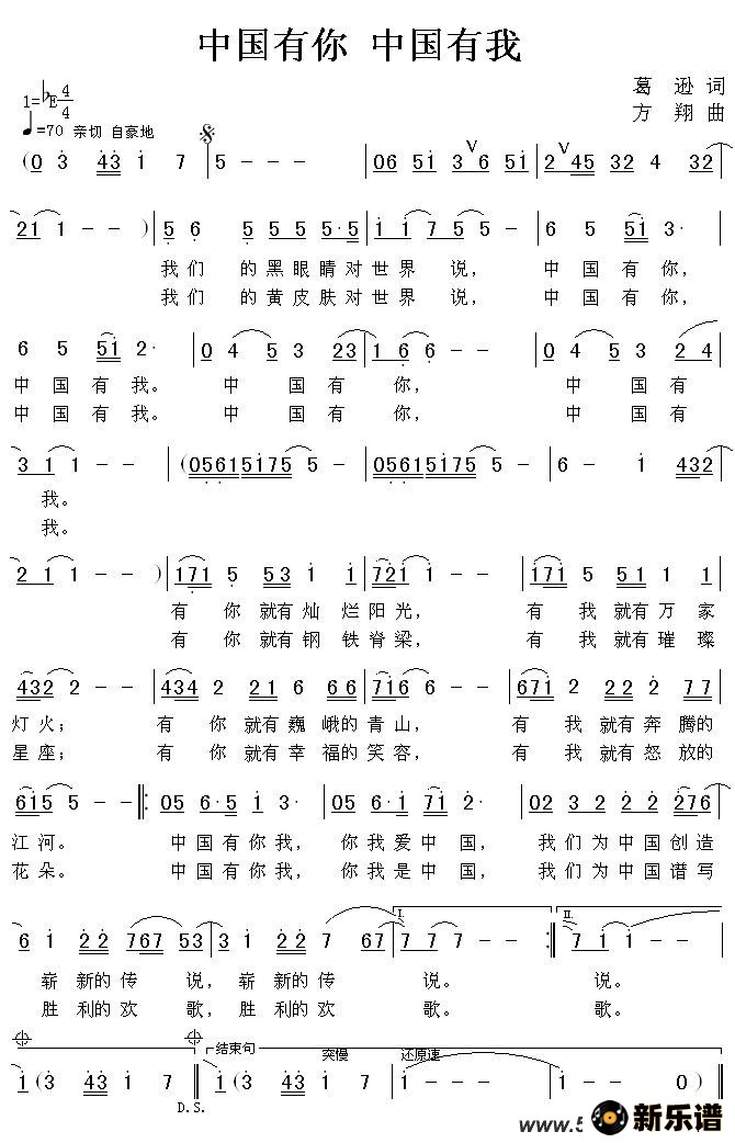 演唱的中国有你 中国有我歌词,中国有你 中国有我最新曲谱.